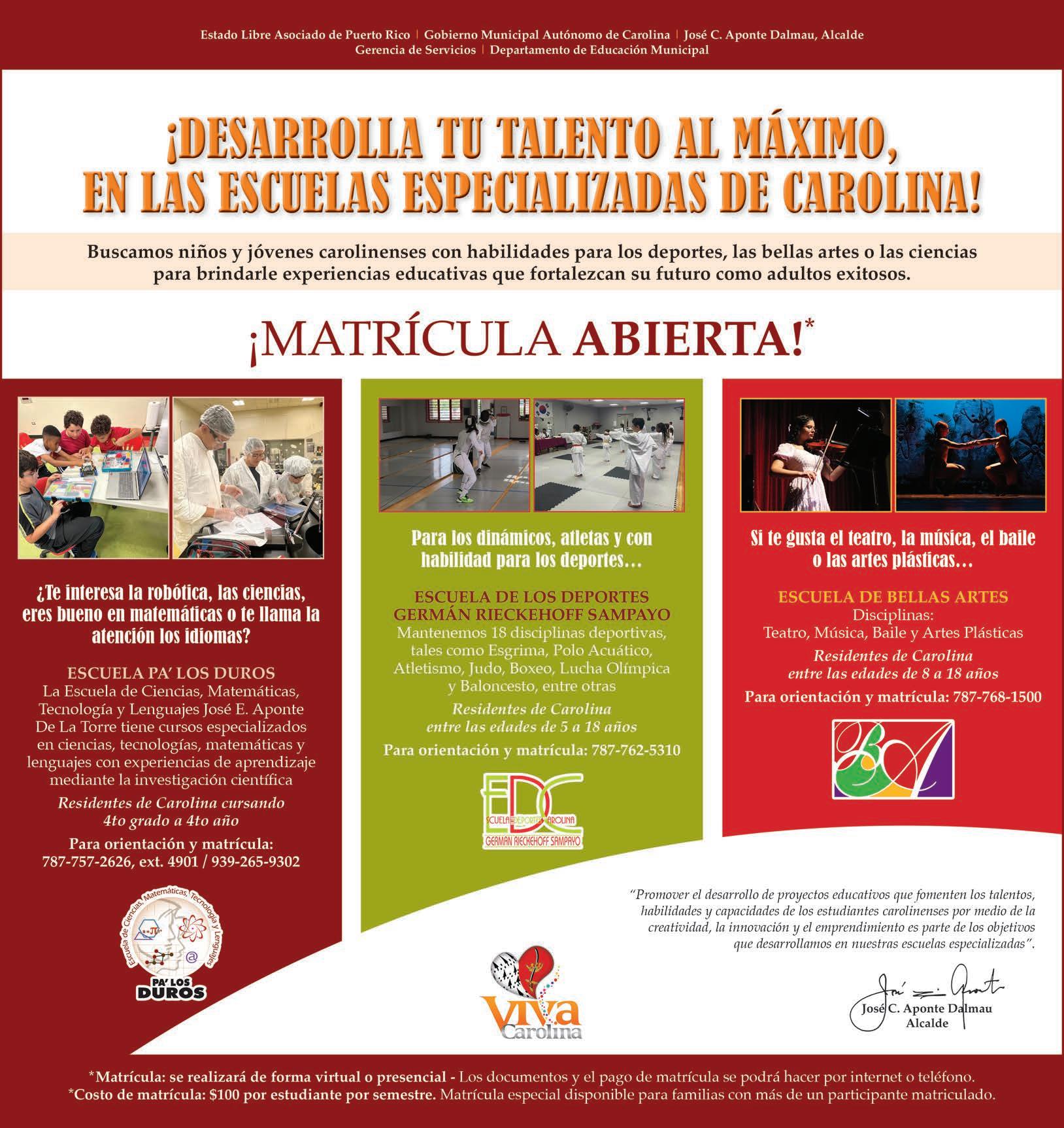 Para más información sobre los programas deportivos de Carolina, se puede comunicar con la Escuela de los Deportes al 787-762-5310 o escribir a escueladelosdeportes@carolina.pr.gov.
