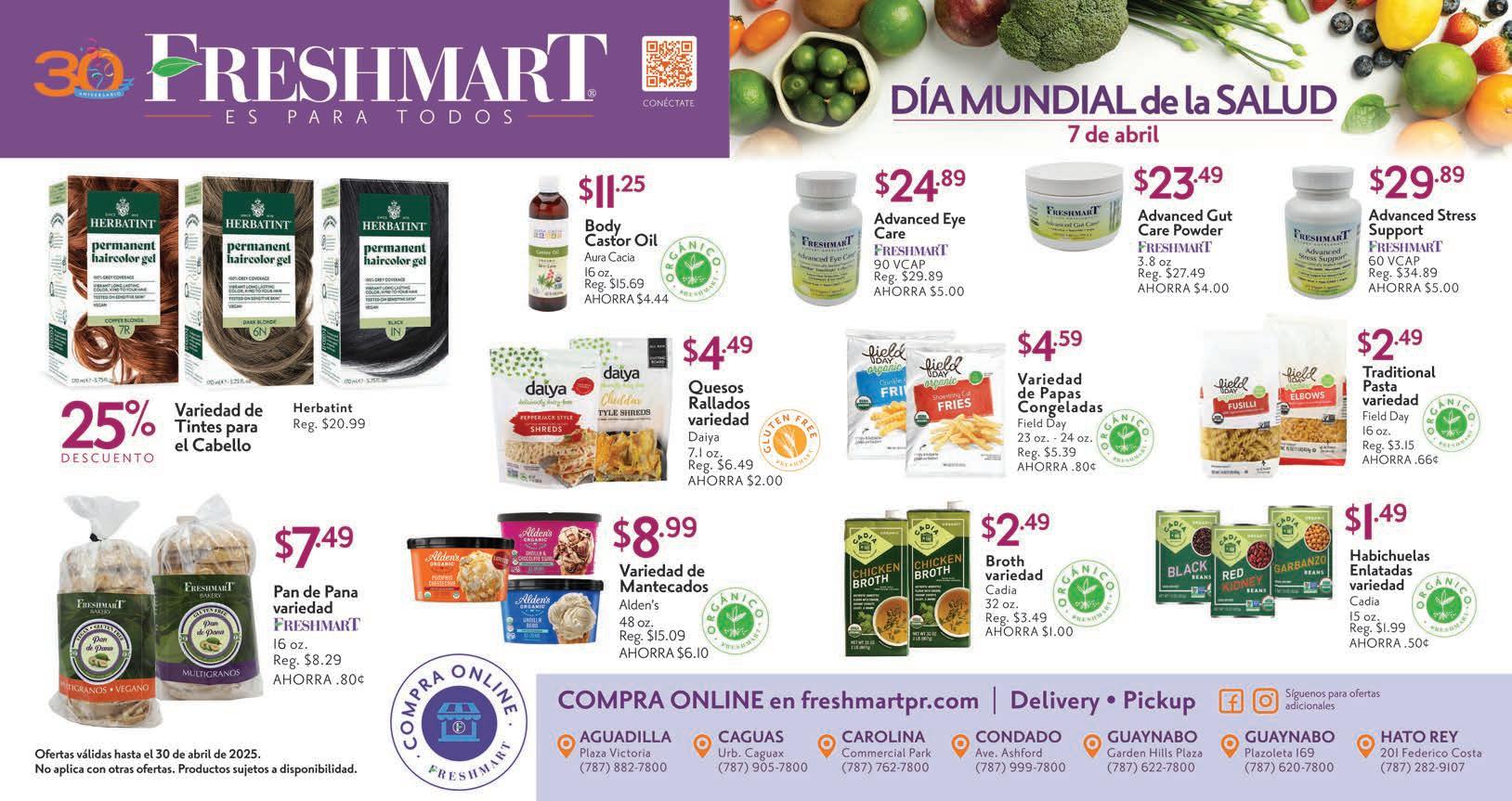 Freshmart y en tu Health food o farmacia favorita. Ahora también en Farmacias Aliadas & Farmacias Caridad.