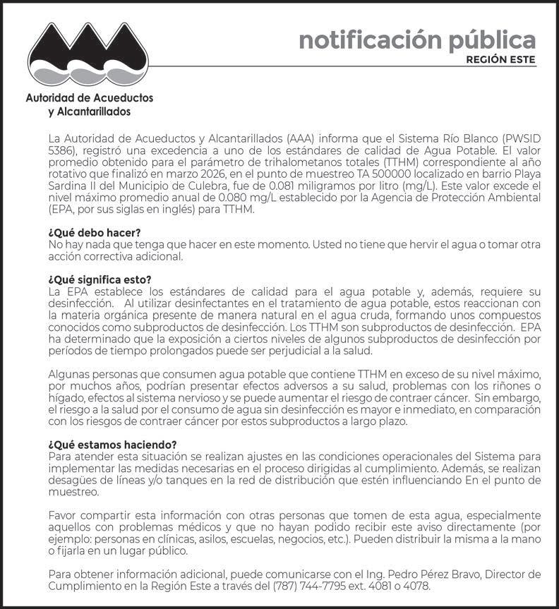 Y SE DISTRIBUYE EN LA REGIÓN NORESTE DE PUERTO RICO