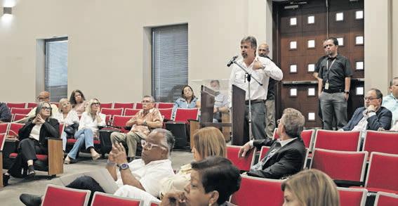 Ciudadanos y comerciantes acudieron para emitir sus opiniones relacionadas con la enmienda propuesta que busca eliminar las excepciones basadas en la ubicación geográ ca para los horarios y regulaciones relacionados con la venta y el expendio de bebidas alcohólicas en los establecimientos comerciales.