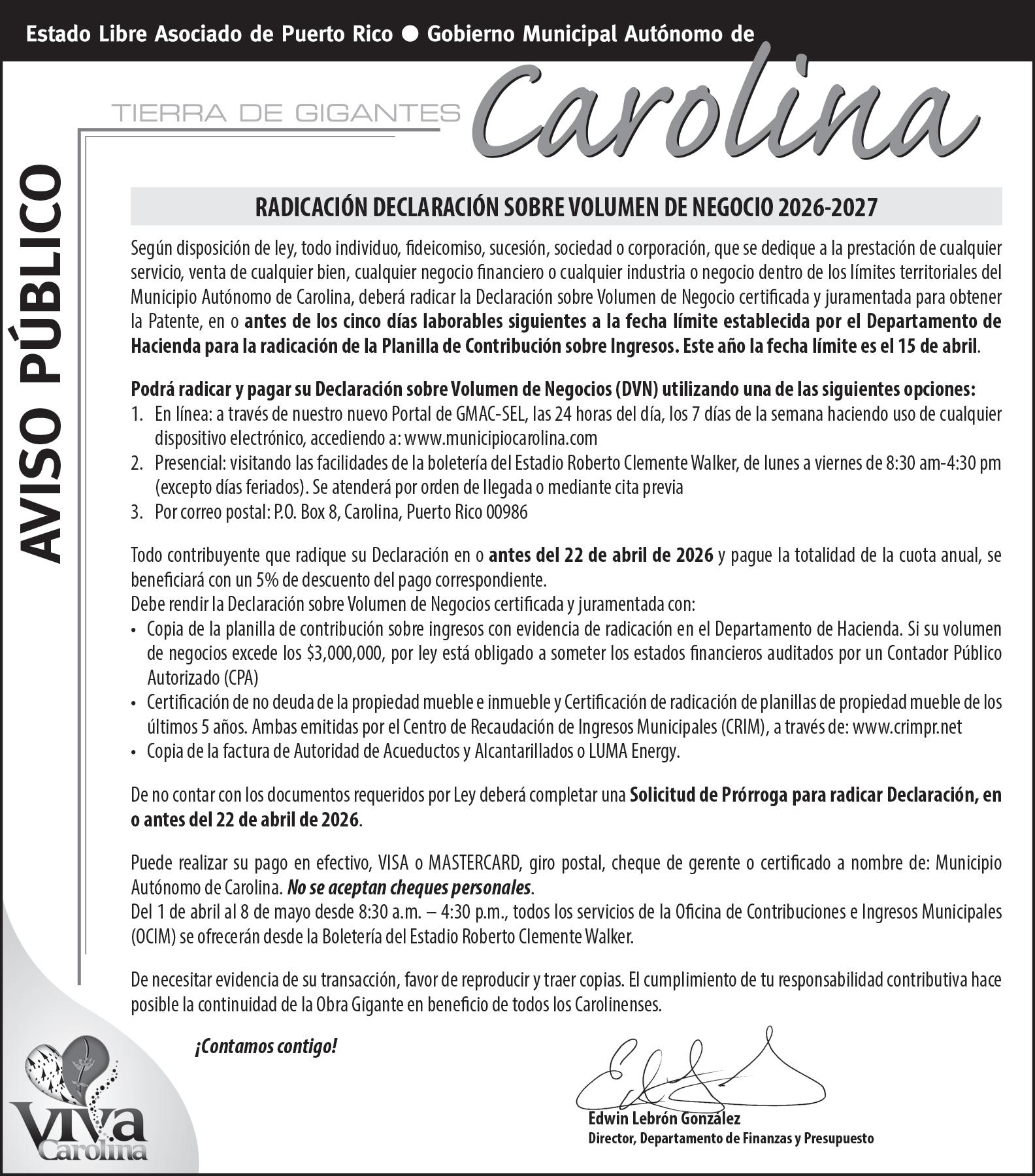 “Esta inversión de $2.3 millones re eja el compromiso rme de nuestra administración con el desarrollo y el bienestar de nuestras comunidades. No se trata únicamente de mejorar instalaciones deportivas, sino de fortalecer espacios públicos que promueven la recreación, la actividad física y la sana convivencia entre nuestros residentes. Cada dólar invertido en nuestras comunidades es una inversión directa en la calidad de vida y en el futuro de Carolina”, expresó Aponte.