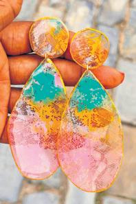 Según detalló la artesana certi cada, la calidad de los productos se re eja en cada terminación, ya que las piezas no tienen burbujas, ni en el centro ni en los bordes. Además, le coloca acabados en color dorado o plateado que brindan un toque limpio, so sticado y elegante, que los hace más duraderos. Cada pieza es única y muy resistente. El testimonio de los clientes es el mayor ejemplo de calidad, pues según la emprendedora, muchos conservan piezas intactas confeccionadas hace más de dos años.