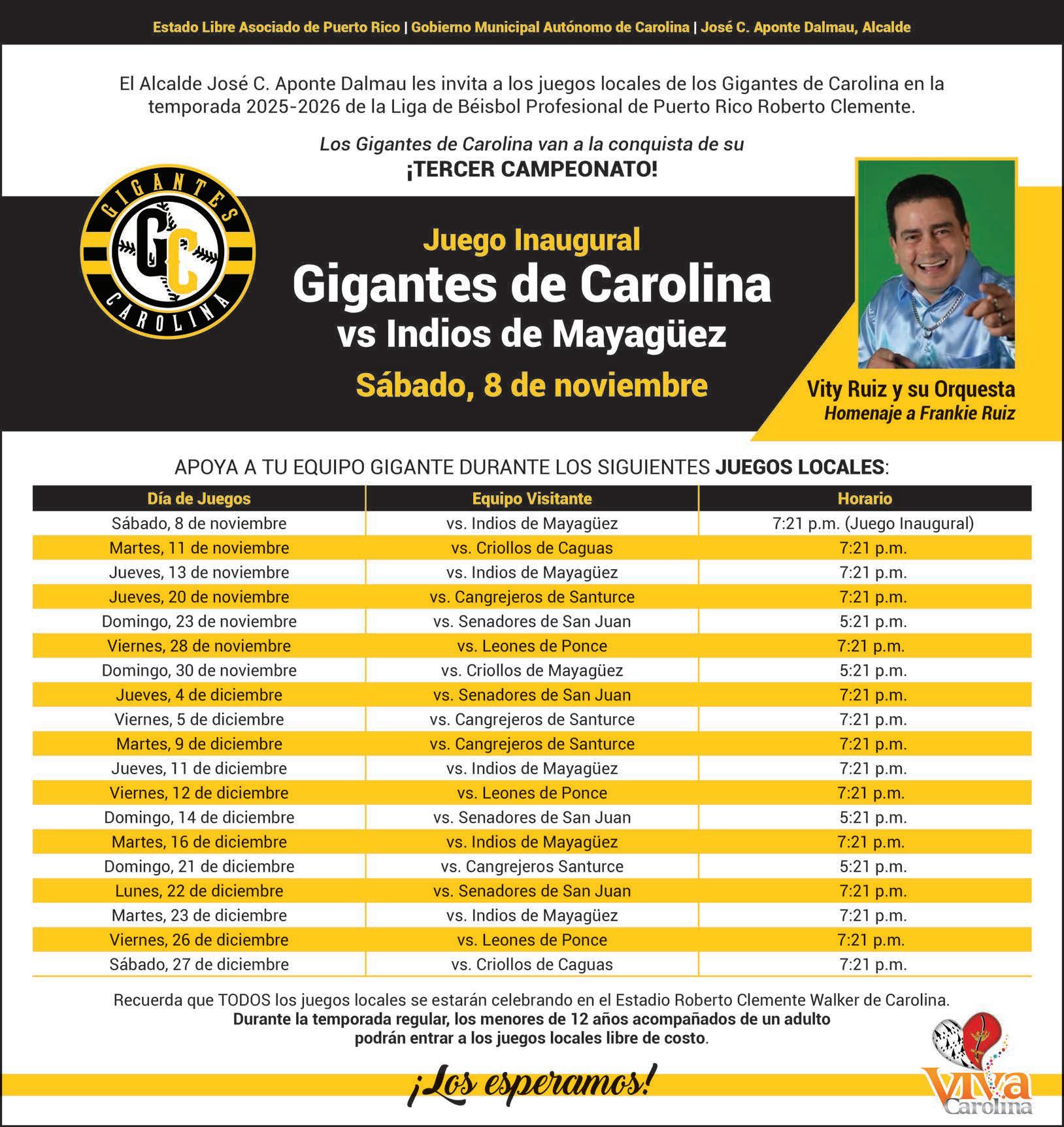 jueves 6 nov. – Bayamón en Carolina sábado 8 nov. – Carolina en Bayamón domingo 9 nov. – Bayamón en Carolina (DSN)