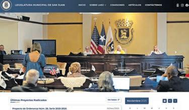 Se informó que el nuevo portal legislaturasanjuan.pr presenta un diseño moderno, intuitivo e interactivo, lo que permite una experiencia clara, ágil y transparente para la ciudadanía. Desde esta plataforma, los usuarios podrán: consultar el calendario legislativo con fechas de sesiones, vistas públicas y actividades o ciales; conocer el progreso o etapa de los proyectos radicados; acceder a órdenes ejecutivas, códigos y reglamentos; solicitar ordenanzas y resoluciones certi cadas mediante un sistema automatizado que permite solicitar, pagar de forma segura y recibir el documento certi cado en menos de