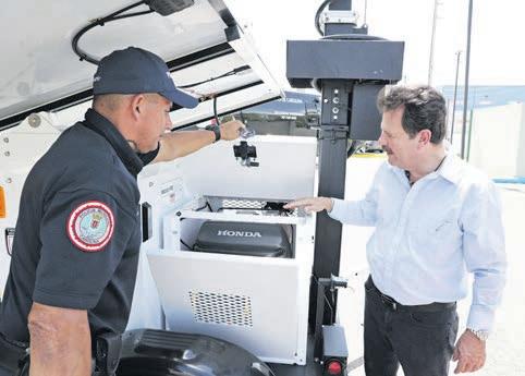 Las unidades funcionan con energía solar, tienen un generador automático, con tres cámaras de alta de nición incluyendo una cámara a 360 grados, tiene sensores de perímetro, con una alarma que emite una alerta de voz a las personas en caso de que se traspase el perímetro establecido, además de tener un sistema de altavoz que puede usarse para comunicarse con la ciudadanía en caso de alguna situación en el lugar donde esté la unidad de vigilancia remoto.