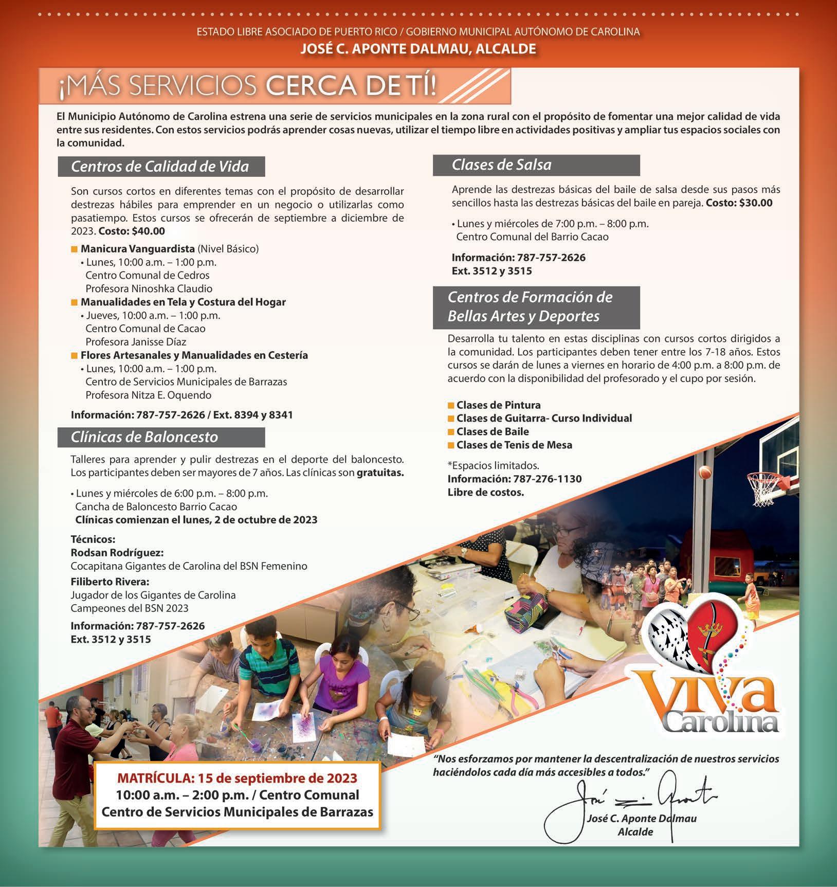 “Los servicios de CSI-CEL son de lunes a viernes de 8:00 a.m. a 4:00 p.m., sin necesidad se hacer cita. Ofrecemos los servicios de Registro Demográ co, Hacienda, Cesco, Ventanilla Única, colaboración para crear