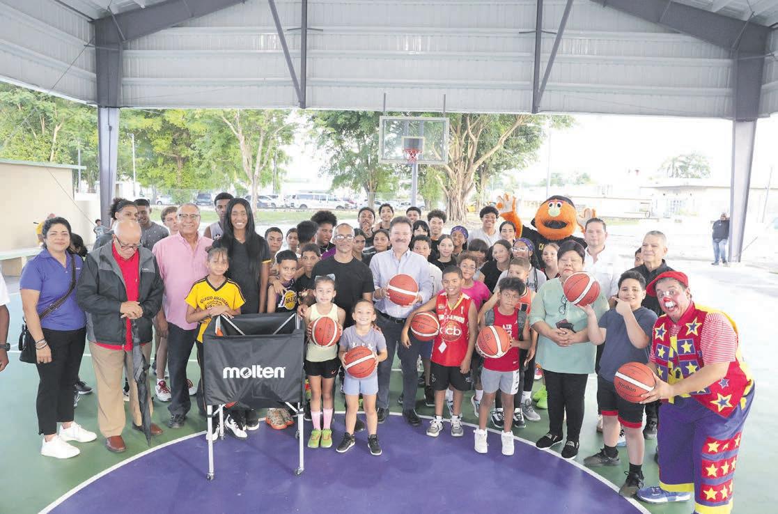 Las reparaciones a la cancha de baloncesto no techada incluyeron la instalación de nuevas conexiones del sistema eléctrico y nueva iluminación LED; limpieza, demarcado de líneas y pintura de la super cie del área de juego.
