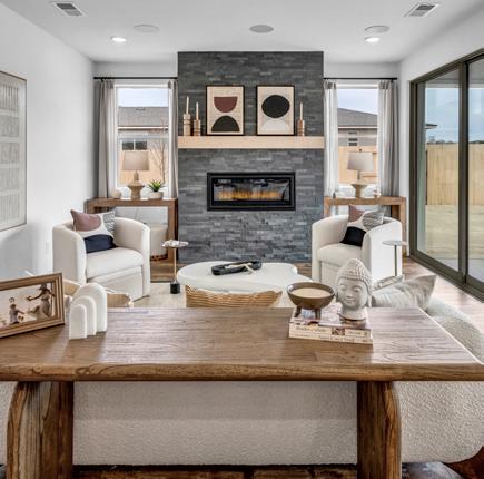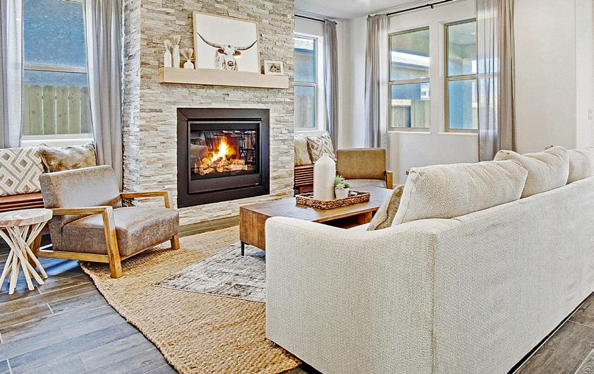 • Cozy Fireplace Options including Linear and Traditional Designs (per plan)