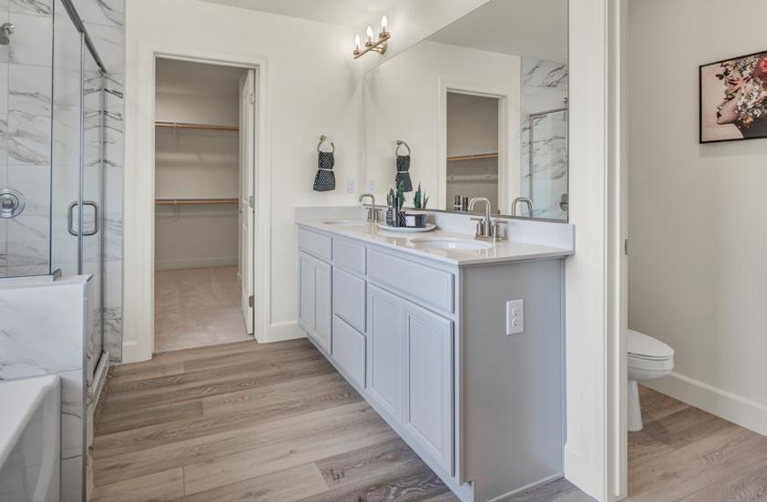 • Luxury vinyl plank flooring in main level living areas, entry, kitchen, baths, laundry (per plan)