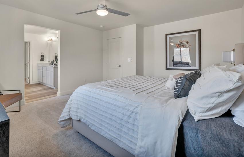 • Spacious walk-in closet with shelving & pole hanging space (per plan)