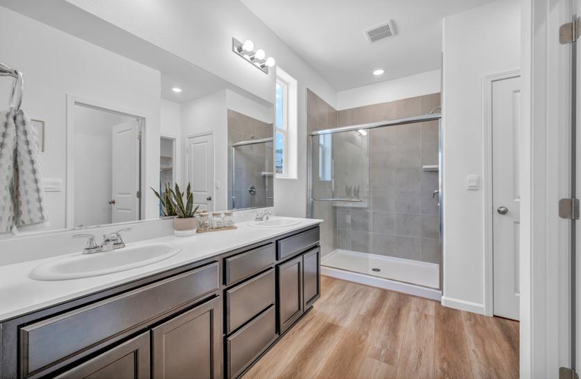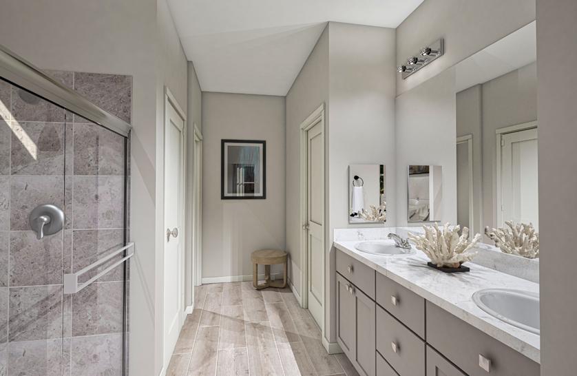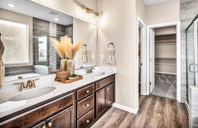 • Shaw® carpeting in owner’s suite & closet, secondary bedrooms & closets, stairs & second level living areas (per plan)
