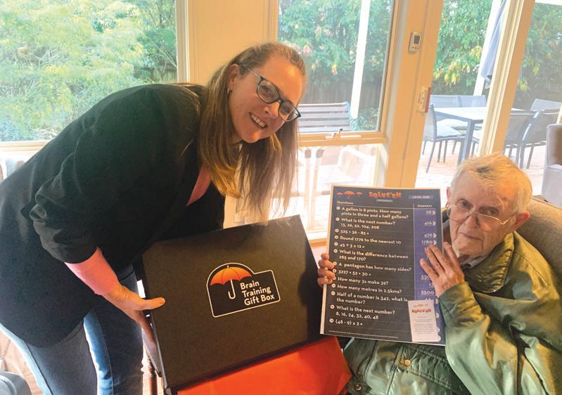 The gift box includes a specifically designed Dementia-friendly puzzle, card game, and math quiz in a beautiful gift box, and is personally presented to each recipient by Kirsty at one of the Umbrella Dementia Cafes. In return, the generous donor is sent a photo of the recipient accepting their gift box so they can see the person whose life they are changing for the better.