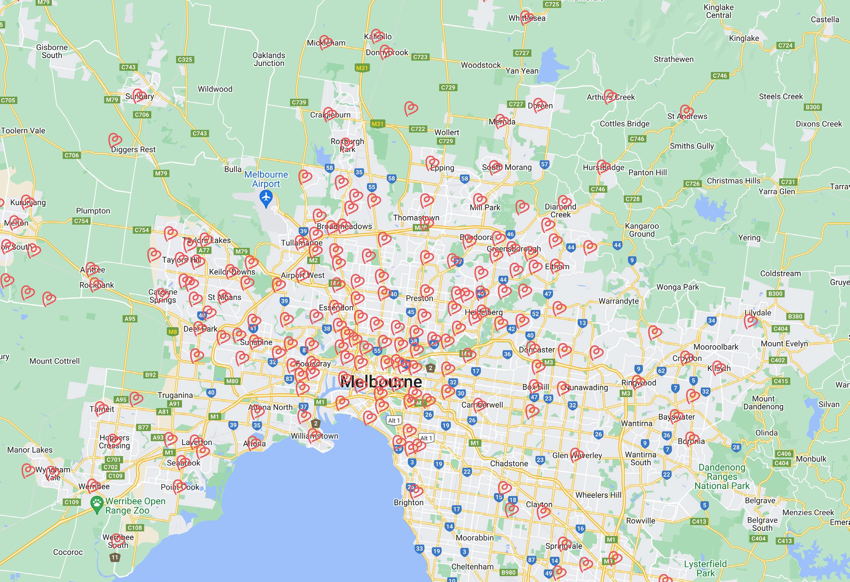 Figure 1. depicts the local spread of recipients with each heart representing a suburb where one or more recipients live. If you are viewing this report online, click on the map to access an interactive map and explore your neighbourhood.
