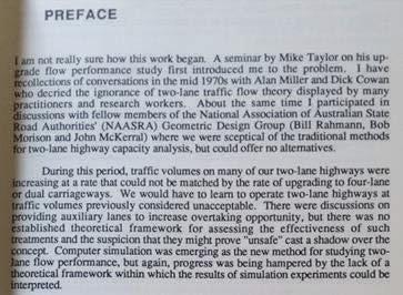 In the same year John joined the research staff of ARRB as one of a number of young graduates and postgraduates recruited by the Deputy Director, Dr John Metcalf to increase in-house research capability. He was placed in the Traffic Engineering Group, a discipline with at best a tenuous connection to his undergraduate and post-graduate training. John remains grateful for the generous sharing of time a nd knowledge by his Group Leader, the late Jim Cowley, and a number of Road Authority traffic engineers. Following from work with a NAASRA Principal Technical Committee (PTC) Working Group charged with reviewing road design standards in the context of budget constraints, John initiated research aimed at being able to operate two -lane highways at higher volumes than was considered acceptable at the time.