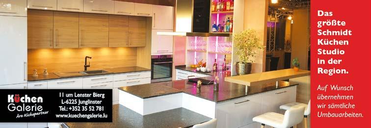 Sauerzeidung 9 Iechternach 40 Joer Keeleclub KC82 Eechternoach PROJEKT: TRAUM HAUS. So individuell wie Sie! STREIF HAUS Luxembourg www.streif.lu ( +352 ) 26 37 88 48 STREI F Mit über 15 Jahren Erfahrung in und um Luxembourg entwerfen und kalkulieren wir gerne auf Ihrem oder einem unserer Grundstücke Ihr persönliches Traumhaus. Centre de la Bourse - Alima 11A, av de la Porte-Neuve L-2227 Luxembourg Tel.: 47 18 73 Mail: kontakt@bijoux-streff.lu bySandyStreff www.bijoux-streff.lu