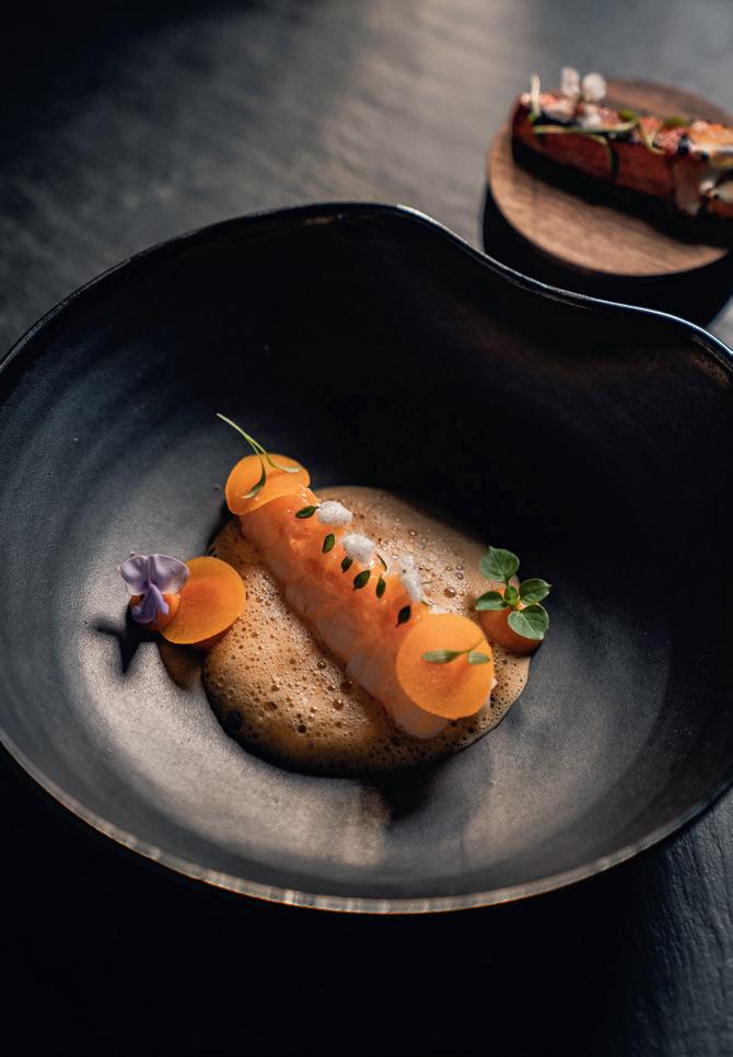 der seinem Fünf-Sterne-Ferien- und Golfhotel in Grassau ein neues kulinarisches Aushängeschild spendieren wollte und das immense Potenzial Sigls wohl intuitiv erkannt hat. Deshalb liess er dem Küchenchef bei der Entwicklung seines Fine-Dining-Konzepts für das komplett neu gebaute Restaurant auch weitgehend freie Hand. Gleichwohl scheinen darin hier und da natürlich auch Elemente durch, die Sigl von früheren Stationen bei Grossmeistern seiner Zunft an den Chiemsee mitgebracht hat. Freilich nicht im Sinne eines in Ehrfurcht erstarrten Epigonentums, sondern im Gegenteil als kongeniale Weiterentwicklung, die längst zu einer unverwechselbaren Handschrift geworden ist. So stand Sigl vor seiner Zeit in der bayrischen Landeshauptstadt unter anderem in der Residenz des 2022 verstorbenen Heinz Winkler (drei Sterne) oder bei Juan Amador (drei Sterne) am Herd – auf den ersten Blick im Grunde zwei kulinarische Antipoden. Aber vielleicht war es gerade dieses Spannungsfeld zwischen produktfokussierter Klassik und grenzenloser Kreativität, das Sigls eigenen Stil so unverwechselbar macht, denn bei ihm kommt das Beste beider Welten auf dem Teller zusammen.