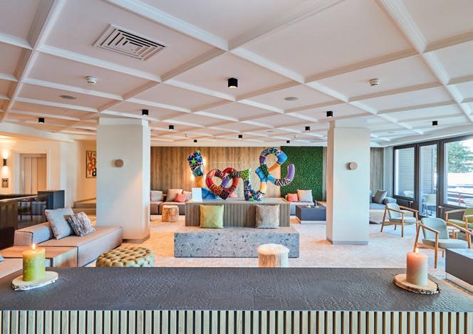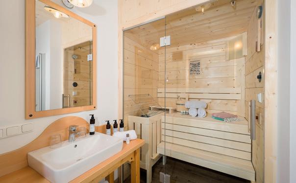 und Suiten des Hotels ist von den Farben der Natur inspiriert und spiegeln den traditionellen alpinen Charme der Region wider. Lokale Elemente und Materialien, kombiniert mit zeitgemässem Design, verleihen dem gesamten Hotel eine einladende und warme Atmosphäre. Die drei Penthouse-Suiten verfügen zudem über einen eigenen Kamin und einen atemberaubenden Alpenblick vom Balkon.