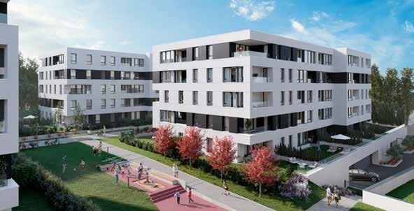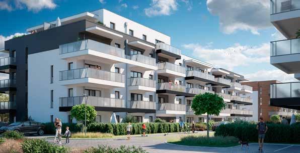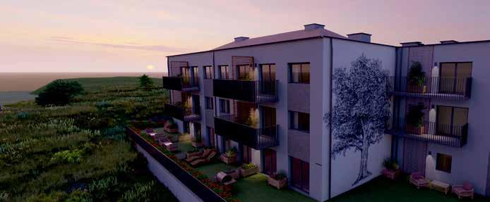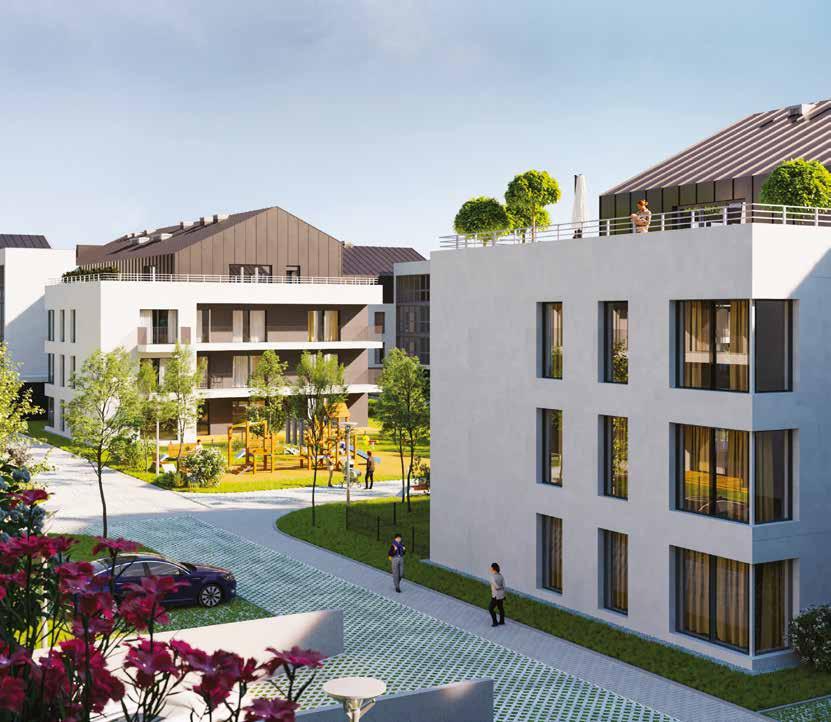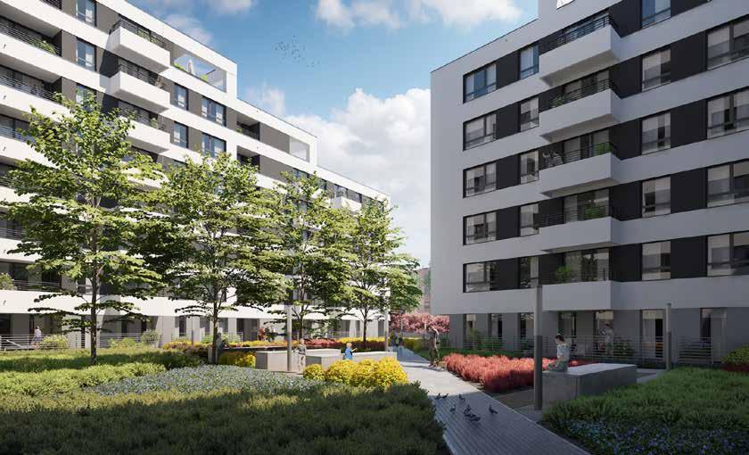 W pierwszym etapie nowej inwestycji powstaną 4 budynki wielorodzinne, łącznie 192 mieszkania o metrażu od 38 do 113 m². W ofercie są lokale 2-, 3- i 4- pokojowe. Właściciele lokali na parterze otrzymają ogródki, a lokale na ostatnich kondygnacjach będą dwupoziomowe. Nie zabraknie przestronnych balkonów i tarasów, nawet o powierzchni 50 m². Zwiększone bezpieczeństwo i komfort zapewnią hale garażowe i wideodomofony. Do dyspozycji będą również komórki lokatorskie oraz dodatkowe miejsca postojowe przed budynkami. Pojawią się m.in. skrzynki pod rolety i cichobieżne windy. Obecnie w sprzedaży jest pierwszy budynek (B1), czyli 78 mieszkań. Ofertę pierwszego etapu uzupełnia 10 domów w zabudowie bliźniaczej o powierzchni 142 m² oraz 2 domy jednorodzinne dwulokalowe o powierzchni 118 m² każdy. Wszystkie o oryginalnej architekturze, z przynależnymi garażami, pełnym uzbrojeniem terenu i niezbędną infrastrukturą. Na terenie całego osiedla pojawią się elementy małej architektury, takie jak drogi wewnętrzne, chodniki i oświetlenie, a dla najmłodszych przestronny plac zabaw. Planowany termin zakończenia pierwszego etapu to III kwartał 2026 roku.