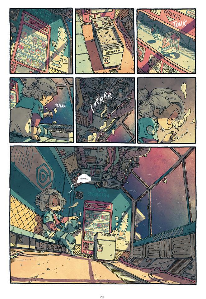 logiche capitaliste, un operaio di una stazione orbitante che scopre un traffico di esperimenti sugli animali e un’ex mercenaria che vuole cambiare vita. L’incontro tra i tre segnerà la rinascita di un germoglio di umanità in un universo piegato dalla presenza dell’uomo. Dopo il successo di The Grocery (scritto da Aurélien Ducoudray), Guillaume Singelin impreziosisce la collana Cherry Bomb curata da Zerocalcare con un volume autoconclusivo di cui stavolta è autore completo.