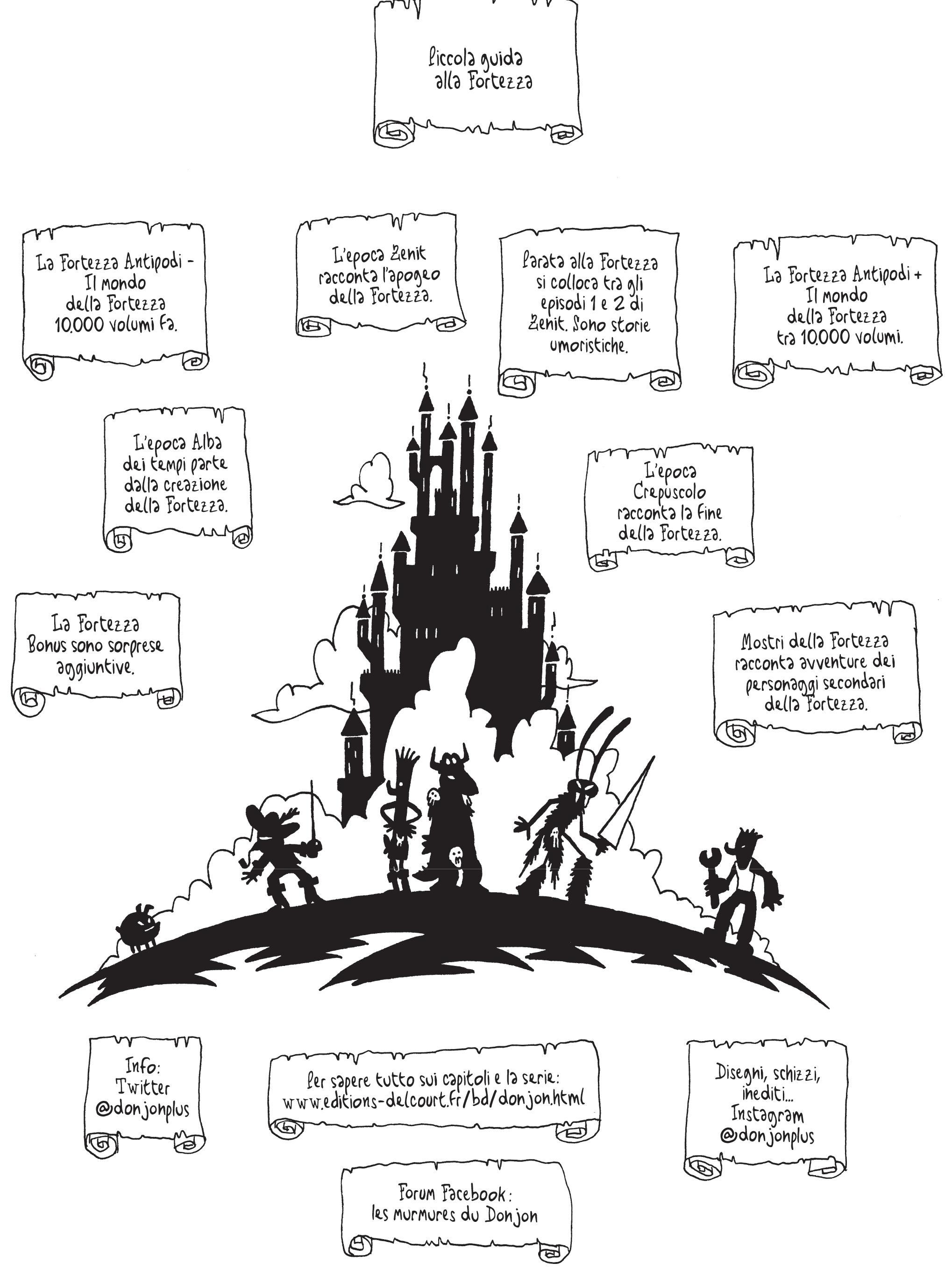 Serie culto del fumetto francese, nel corso degli anni La Fortezza è stata pubblicata in Italia con esiti alterni: uno dei principali motivi che ne rendono così complessa la pubblicazione è sicuramente l’impianto narrativo strutturato dai due creatori, Joann Sfar e Lewis Trondheim. L’edizione BAO porta per la prima volta in Italia l’opera completa e lo fa, in accordo con i due autori, seguendo un ordine cronologico. Legata a un concetto ben preciso, quello di un vastissimo castello in cui dimorano mostri di ogni tipo e che basa il proprio modello economico sugli avventurieri che vogliono trafugare tesori o sconfiggere le creature che vi dimorano, la serie è suddivisa in linee temporali che raccontano i diversi periodi della Fortezza.