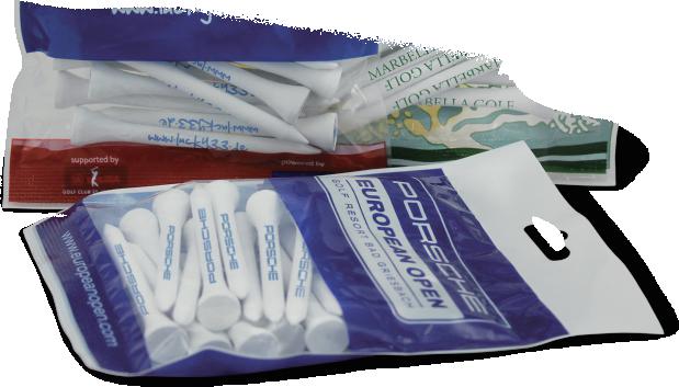Fully printed golf tee packaging with your own unique design. Available for 20, 50 and 100 tee quantities MOQ: 1000