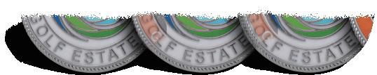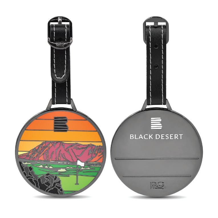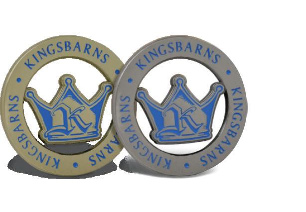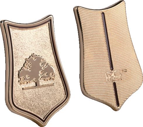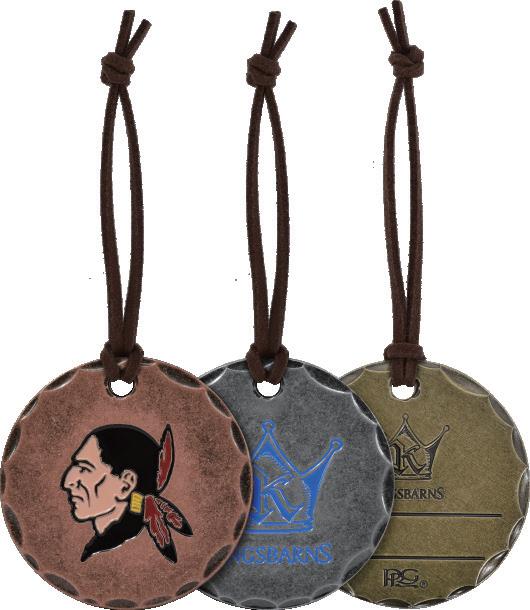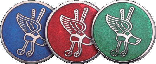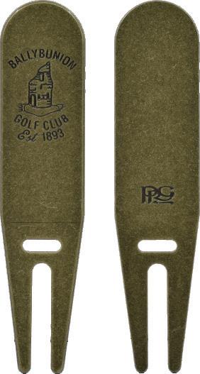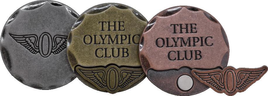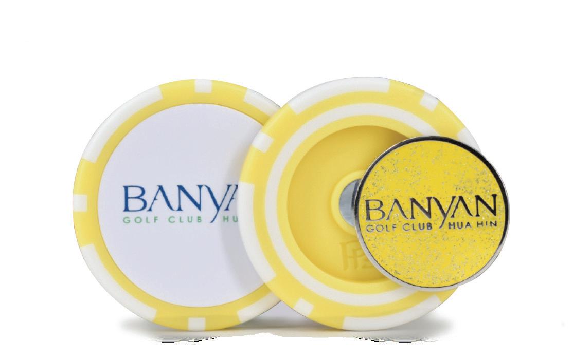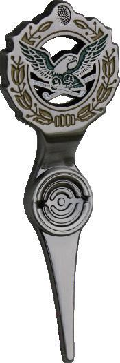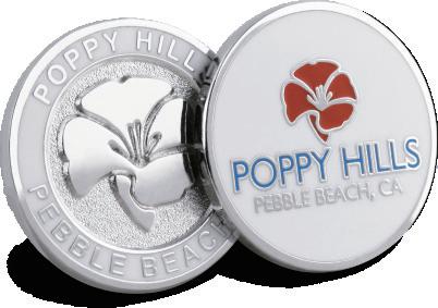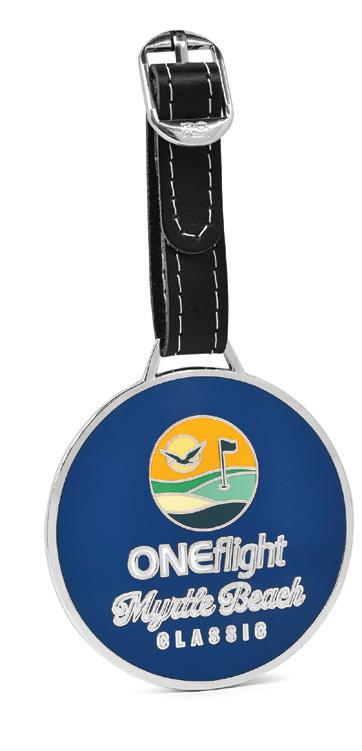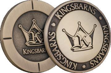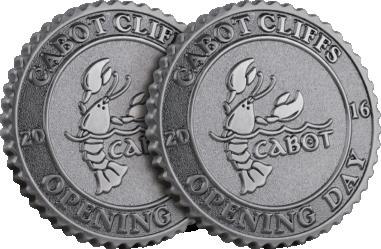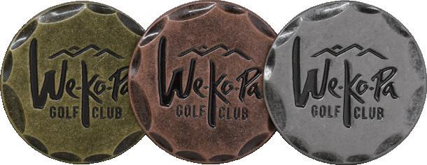 Made of copper and designed to show the front and back nine yardages of your course Size: 42mm | MOQ: 150