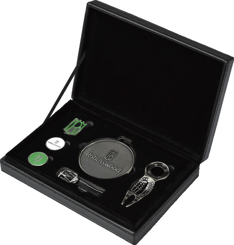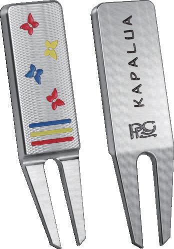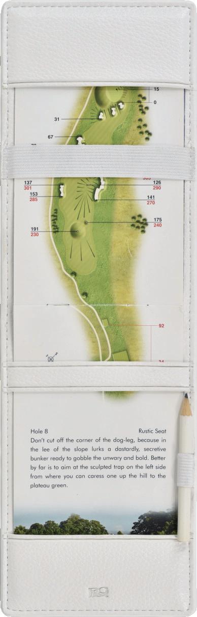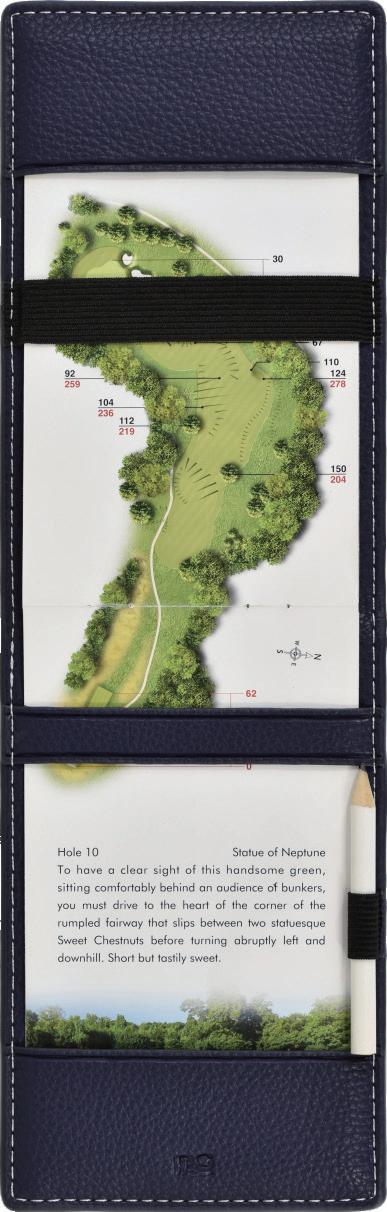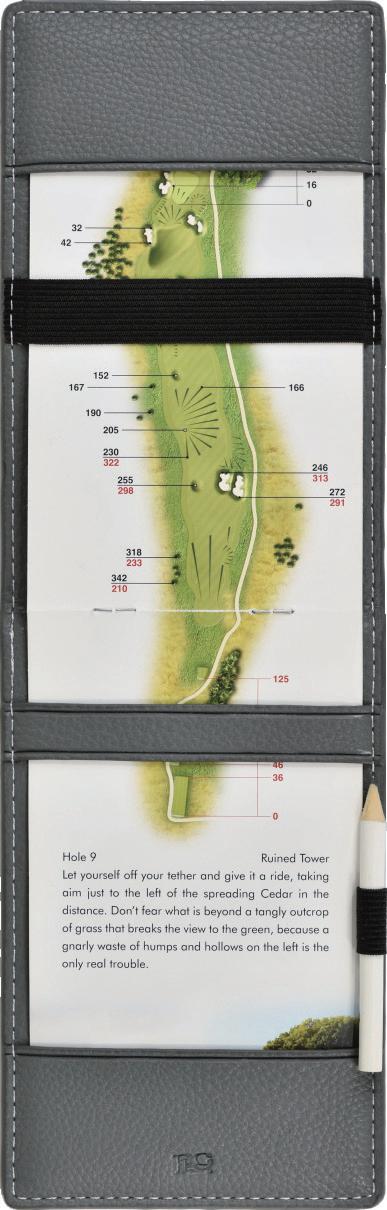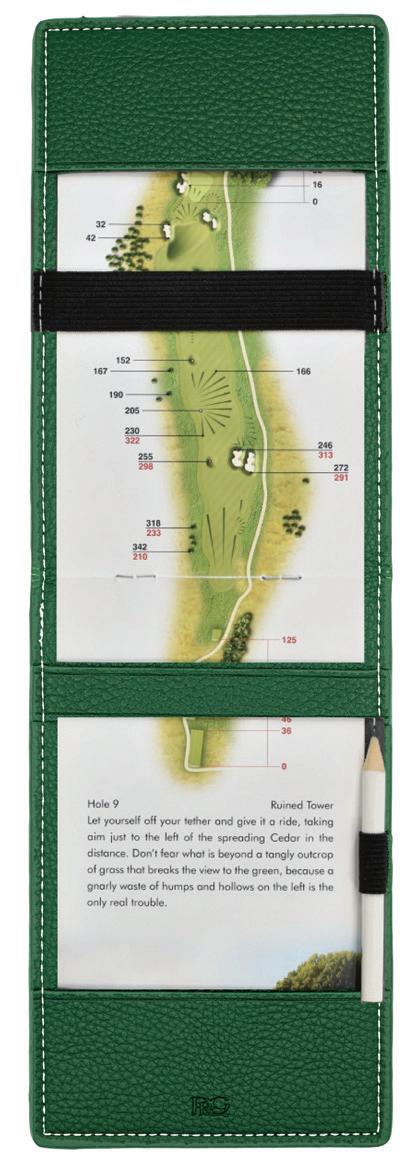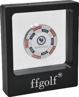 Showcases the front and back nine yardage of your course and a magnetic well to hold a 24.5mm ball mark