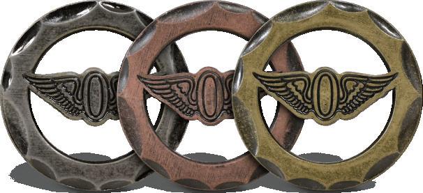 Forged look with chiseled edge design featuring a cut-out logo in the center Size: 35mm | MOQ: 150