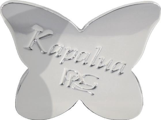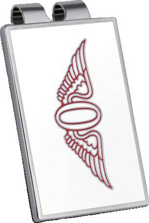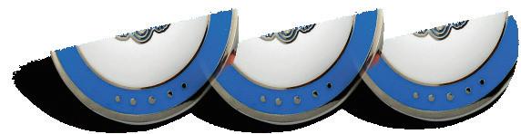 Metal logo on clear or causeway glass e ect with white enamel ring for raised metal text