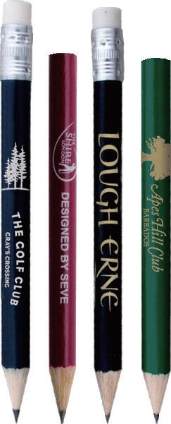 Golf pencil with single color, pad printed logo. Available with or without eraser in white, red, navy, green or black MOQ: 1000