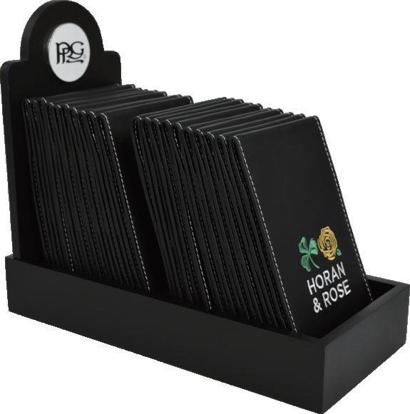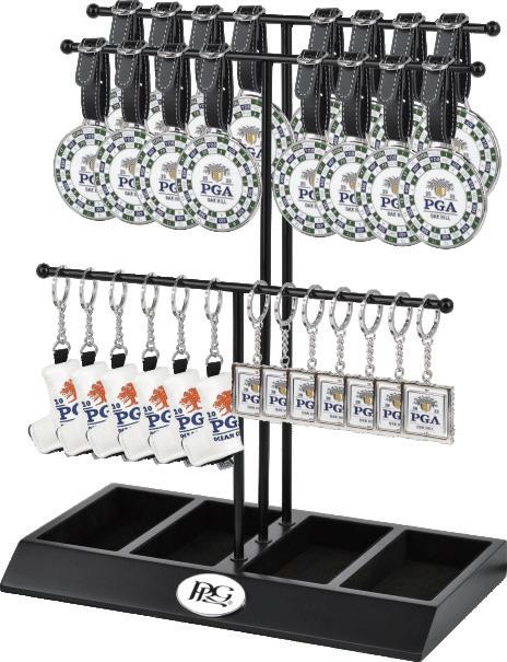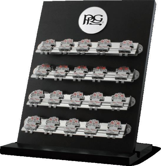 Displays up to 24 products. Available with PRG logo or customized metal logo