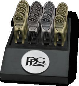 Developed to hold 3 display trays of your choice (see above). Available with PRG logo or customized metal logo