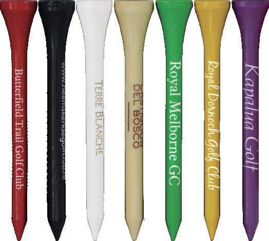 Wooden tees with both stem and cup printing options. Available in white, black, and natural wood. Bespoke color tees, PMS color matched on orders of 10,000+ tees MOQ: 1000