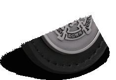 Forged look with chiseled edge and space for a single or double logo; also available in color fill