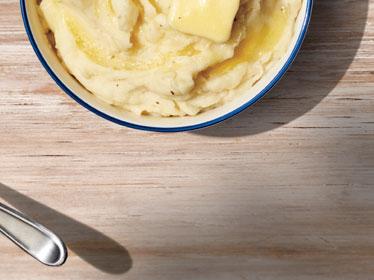 4. Add butter, cream and garlic to potatoes; with mixer on medium-high speed, beat potato mixture 3 minutes or until smooth. Fold in cheese, pepper and bacon; serve garnished with chives, if desired. Makes about 6 cups. Approximate nutritional values per serving (¾ cup): 327 Calories, 19g Fat, (11g Saturated), 51mg Cholesterol, 143mg Sodium, 34g Carbohydrates, 3g Fiber, 2g Sugars, 0g Added Sugars, 8g Protein