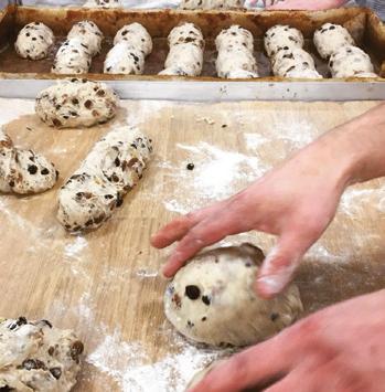 BY THE TIME the sun has risen and the morning dew has burned off the fields around Horncastle, Rob Myers arrives at his family bakery. The fifth generation of Lincolnshire’s Plum Loaf dynasty, Rob and sister Marie are continuing to champion this muchbeloved staple of a Yellowbelly’s teatime. Rob’s rude awakening, typically about six in the morning, is surpassed in its unruliness by the early start of the team of six bakers who had arrived that morning at 3am. Myers bakes over 80 different lines, which is vast compared to the usual number of lines made in-house by a family baker. As well as the usual array of artisan breads, though,