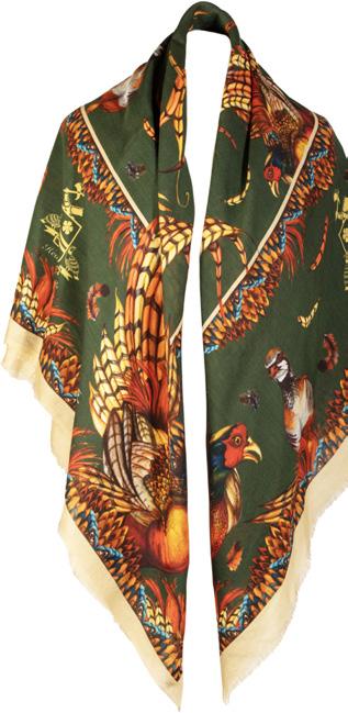 the bright colours in her work and allows Clare to become the first UK brand to produce double-sided silk scarves, only usually seen with brands like Hermés.