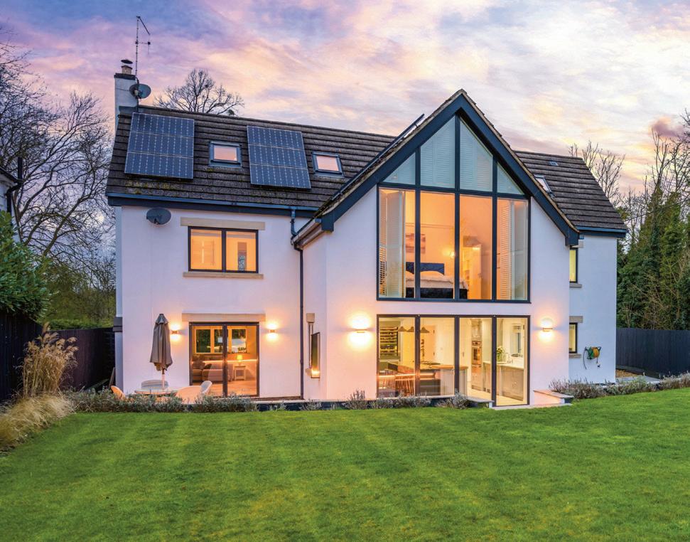 Contemporary yet classic, private, peaceful and serenely spacious, The Corner House is quietly tucked away on a large, corner plot on Barrowden Road. This modern, detached home is approached through secure, electric gates and a block paved driveway which is replaced by a golden gravel parking area, ahead of a detached garage. Borders of mature shrubs frame the striking glass-fronted, gabled entrance to The Corner House. Full height glass floods light into the open and airy entrance hallway.
