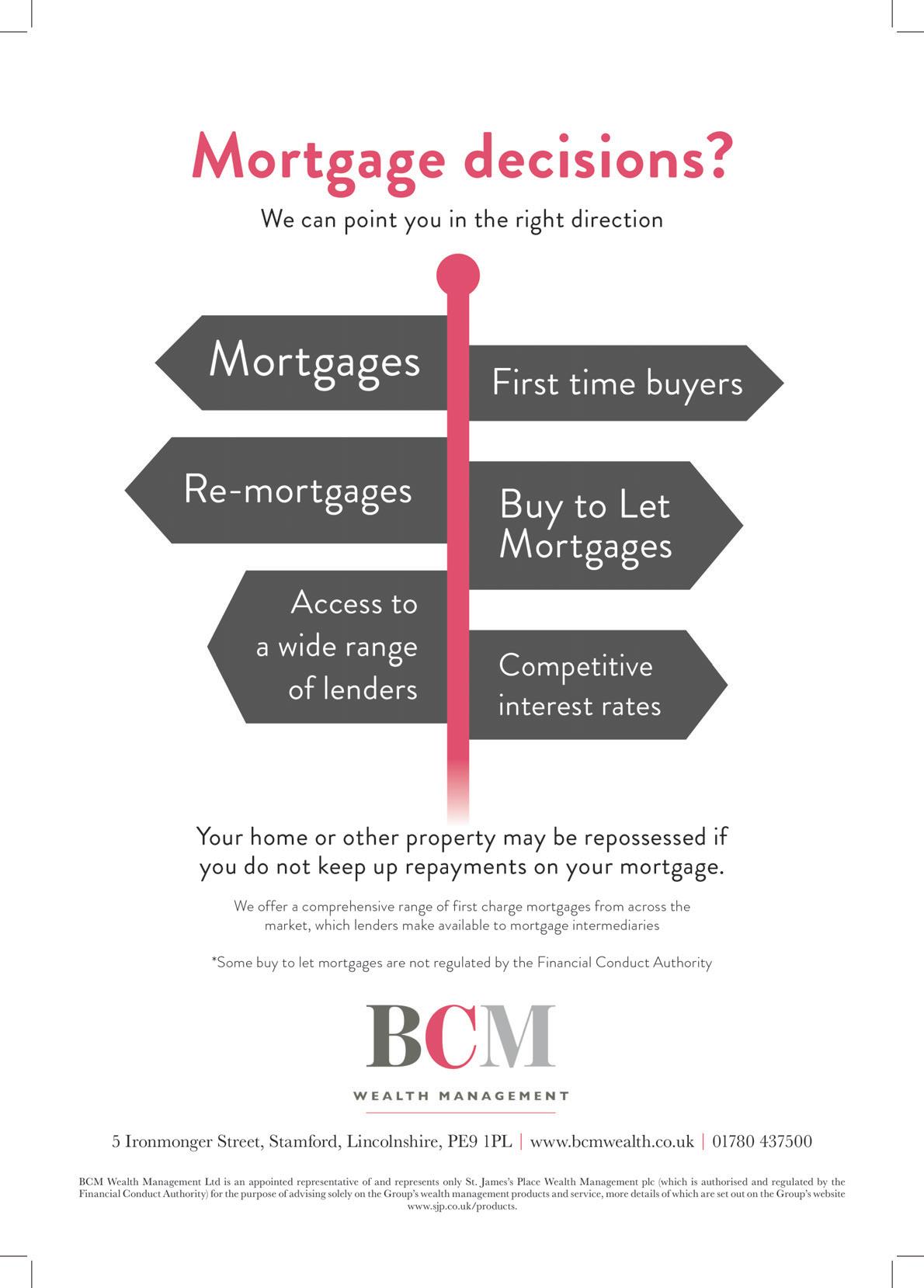 Chat to our specialist mortgage team at BCM Wealth Management, based at 5 Ironmonger Street, Stamford, Lincolnshire, PE9 1PL www.bcmwealth.co.uk 01780 437500