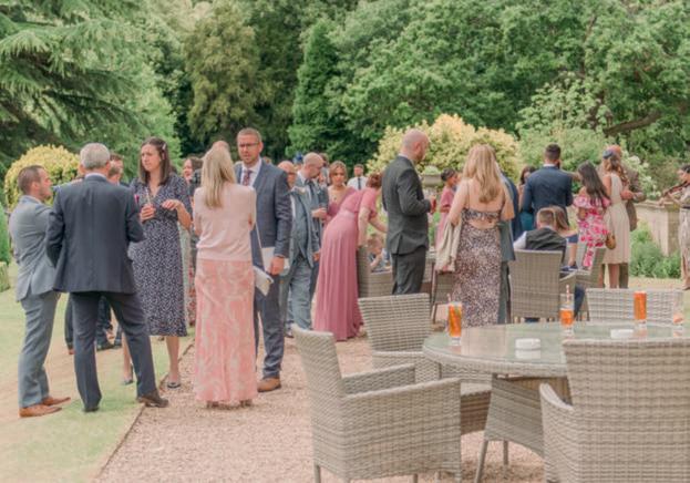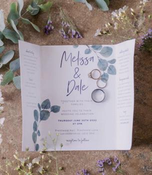>> Flowers were from Loughboroughbased Fern & Grace and featured roses, sweet peas and eucalyptus, whilst venue decoration and the couple’s table plan were provided by Melissa’s graphic designerfriend Kim Keys. The reception featured a violinist and later dancing to Mumford-style party band Folklore.