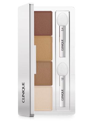 A new quad palette of eye colour from Clinique, shown here is Teddy Bear shade, with longwearing formula and vibrant pigments ideal for creating a range of looks for day or night, £39/4.8g.