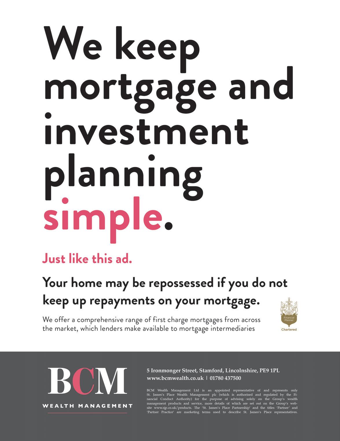 Chat to our specialist mortgage team at BCM Wealth Management, based at 5 Ironmonger Street, Stamford, Lincolnshire, PE9 1PL www.bcmwealth.co.uk 01780 437500