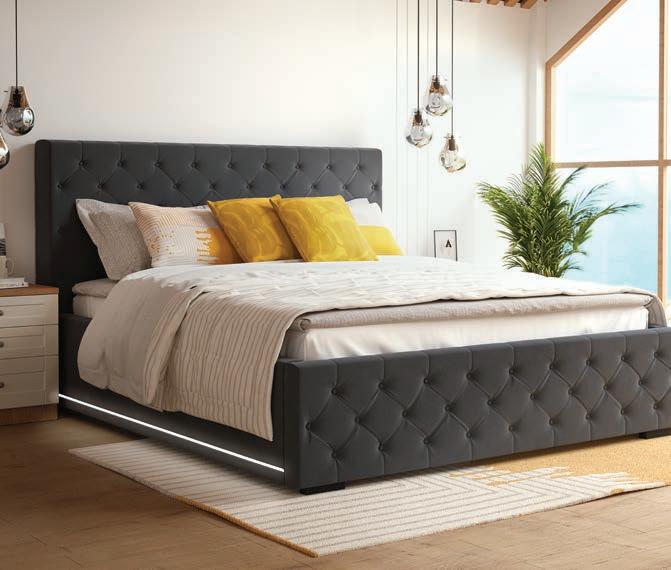 опција за вградување на ЛЕД светло со сензор простор за постелнини под подниците со подигање подници кои се подигаат со гасни амортизери АЛБЕРТ тапациран кревет 196 x 255 x 125 см, различни бои со ЛЕД осветлување, душекот не е вклучен во цената 74.025,00 48.116,00 голем избор на бои и штофови Достапни бои: Премиум попуст -35% 35 см ГОДИНИ ГАРАНЦИЈА ∙ средно тврд душек ∙ џебно јадро ∙ заштитна бела навлака метални ногалки Достапни бои: МАРШАЛ бокс кревет 180 x 200 см, Ричфилд душек вклучен во цената. 143.357,00 93.182,00 голем избор на бои и штофови достапен во повеќе димензии Премиум попуст -35%