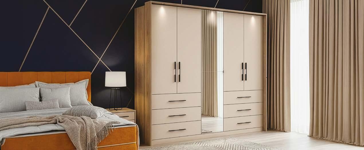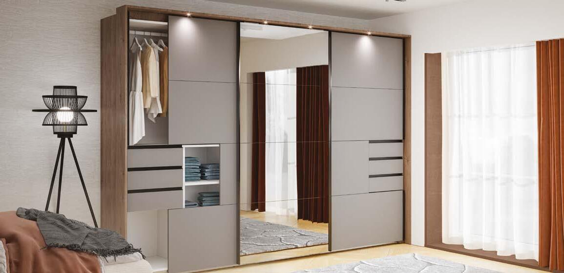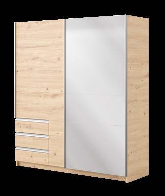Zahvaljujoč pametnemu drsnemu sistemu je idealna za spalnice in hodnike manjših kvadratur, brez izgube prostora. Izbirajte dimenzije, dekorje in detajle ter sestavite omaro, ki združuje sodoben dizajn, funkcionalnost in kakovost, izdelano, da traja.