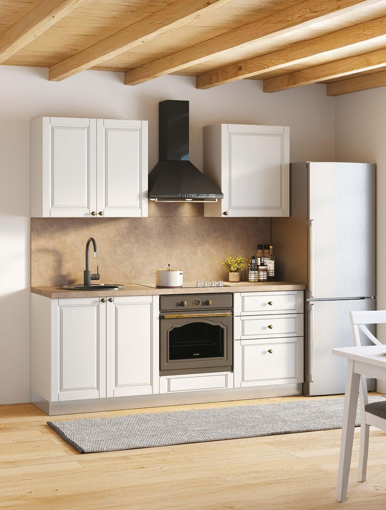 Aparati, korito in kuhinjska stenska obloga niso vključeni v ceno Cena je primer izračuna personalizirane kuhinje. Popust se nanaša na izdelavo kuhinje po željah kupca, v ceno so všteti vsi popusti. LIBERTA LUX kuhinja po meri sestav na sliki, leseni del, 4.226,95 € 9.393,21 € *na 36 obrokov