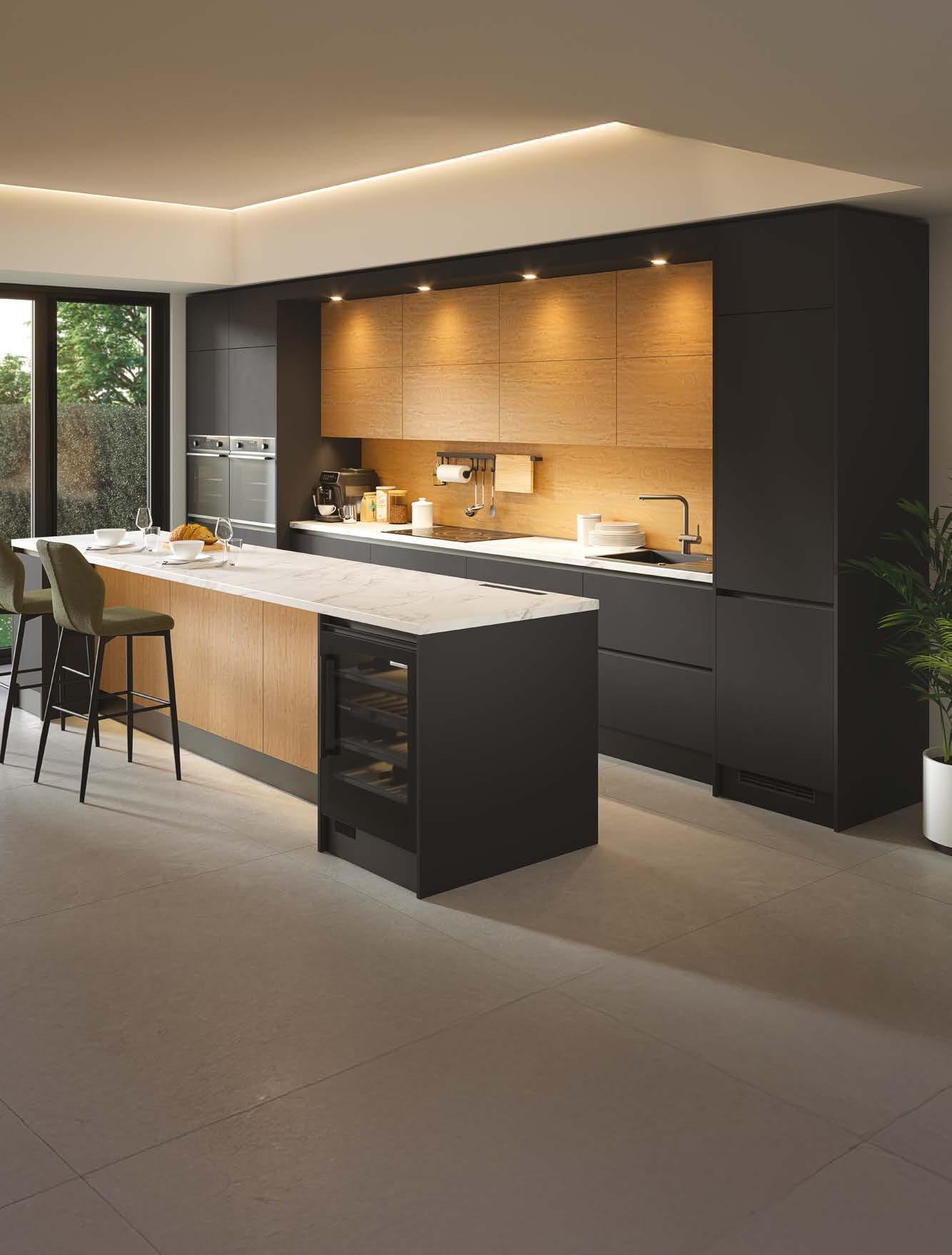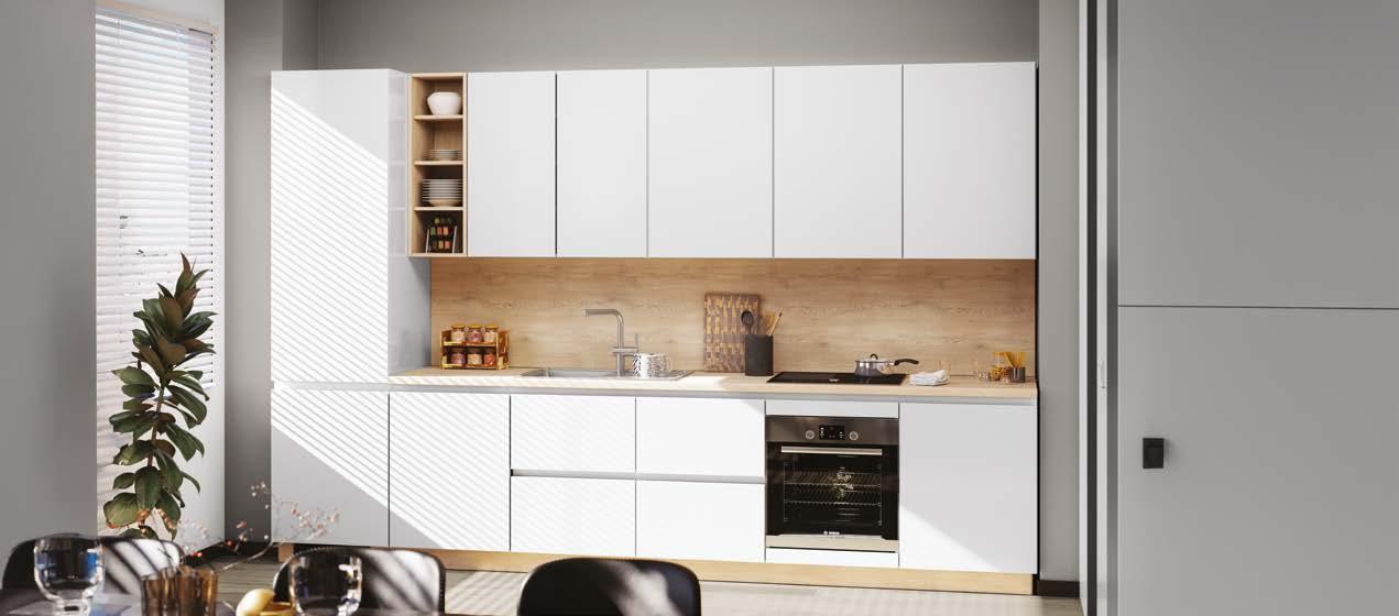 * Prihranek v višini 1.000,00 € predstavlja seštevek vseh prihrankov, ki jih kupec doseže z nakupom določenih dodatno znižanih elementov (razsvetljave, visokega elementa za shranjevanje, steklenih elementov in elementov do stropa). Velja za vse kuhinje po meri.