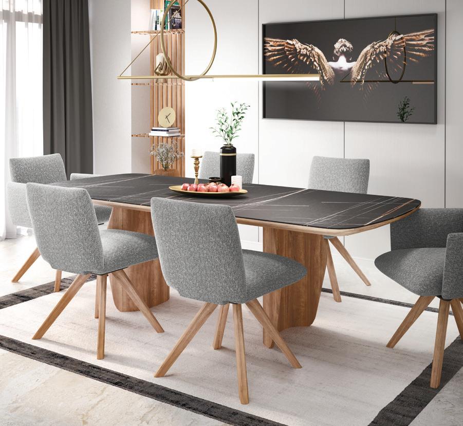 Strukturne, estetske i funkcionalne karakteristike keramičkih ploča čine ih jedinstvenom opcijom za opremanje. Koristimo ih u našim blagovaonskim programima stolova i komoda gdje nudimo širok izbor različitih ploča koje se razlikuju bojama, teksturom i uzorcima - žilama. Žile na pločama se nastavljaju s jedne ploče na drugu, u svim smjerovima. Zbog procesa proizvodnje porculanskih ploča moguća su odstupanja u praćenju žila, do maksimalno 10 mm.