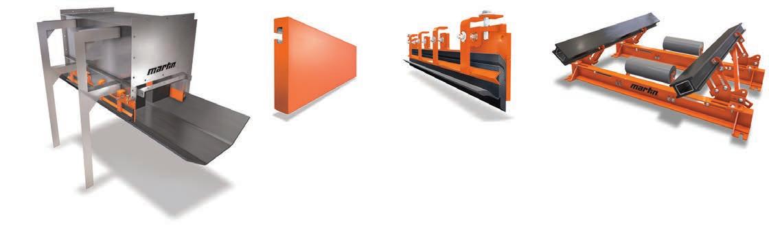 ugitive material escaping from transfer point locations can seriously jeopardize worker health, equipment performance, and your bottom line. Martin's easy-to-install Modular Transfer Point Kits — with several loading, settling, and stilling zone configurations — combined with our ApronSeal™ dual-seal skirting, skirtboard liners, and belt support cradles effectively arrest problematic dust and spillage. When transfer locations are properly engineered for maximum containment, operations run cleaner, safer, and more efficiently.