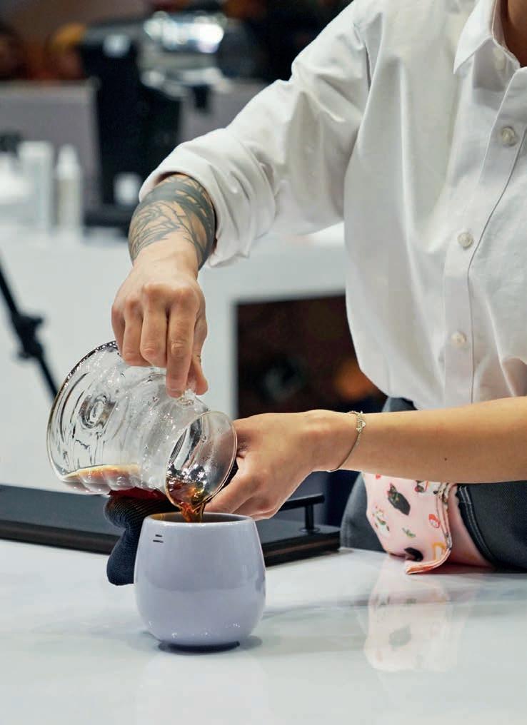 I didn’t do much di erently this time, but I worked more intensely. For the past three years the co ee for the competition has been supplied by Minas Hill Co ee, and they only deal with Brazilian co ee. It’s not easy, because the sets for triangulation used to be from di erent regions, but for the past few years it’s only been Brazilian co ee which makes it harder for competitors. I tried to get all the Brazilian lter co ee I could to practise with and make me more sensitive to the di erent attributes. It meant I could get deeper into it to nd those narrower di erences.