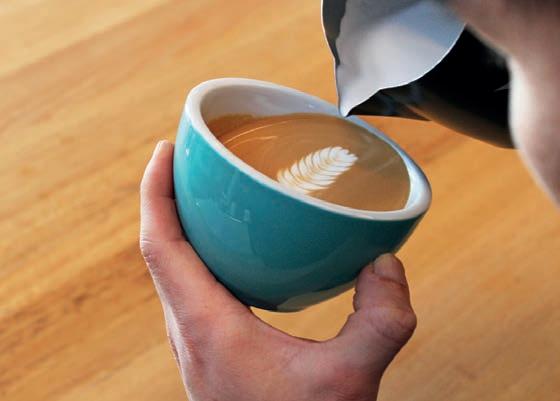He advises sketching the design out multiple times on paper first to memorise the order in which the pours will need to be made. Once it’s in your head, then give it a go in the cup.